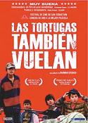 En Las tortugas también vuelan el trabajo de los niños consiste en encontrar minas antipersonas para después venderlas. Los fabricantes norteamericanos y europeos se las vendieron a dictadores como Sadam u otros que las diseminaron por todo el país, señala el realizador. Los personajes son los habitantes de un pueblecito del Kurdistán iraquí, en la frontera entre Irán y Turquía, que buscan información vía satélite sobre la guerra que se les avecina, el inminente ataque de los Estados Unidos contra Irak, aunque no entienden el idioma ni las imágenes mostradas en televisión. Finalmente la información les llega a través de un niño mutilado que viene de otro pueblo con su hermana y el hijo de ésta. Es una denuncia contra la guerra. “La película ganadora (Las tortugas también vuelan) está cargada de humanidad, poesía y humor”. Vargas Llosa, presidente del jurado Festival de Cine de San Sebastián 2004. “La producción irano-iraquí causo una gran conmoción entre la crítica y el público. Rodada con modestos medios, sin actores profesionales, Las tortugas también vuelan destila sinceridad, autenticidad y dolor por todos sus poros. Un premio que dignifica al jurado.” A. S. Harguindey. El País. “No se puede hacer una película documental sobre esos lugar y lo que allí ocurre. Sería insoportable para el espectador ver ese horror, no se puede asimilar tanto dolor. Yo, al principio de la historia, he introducido un grado de comicidad, incluso de alegría, para aliviar un poco la tensión. Yo quería contar el sufrimiento de estos niños. Son niños que jamás habían visto una cámara de cine. Actué como un cazador, les pedí que vivieran delante de mí, no quería que actuaran, sino que vivieran ante la cámara. Es una película hecha cono mínimo control, con mínima dirección, sólo se deja llevar por sus vidas. Lo que ocurre delante de la cámara ocurre una sola vez y no se puede ensayar y no se puede repetir.” Bahman Bhobadi. “Por las sonrisas de los niños me ha compensado. Cuando la proyectamos en el Kurdistán la gente se sintió muy identificada y no pararon de besarme y abrazarme.” Bahman Bhobadi